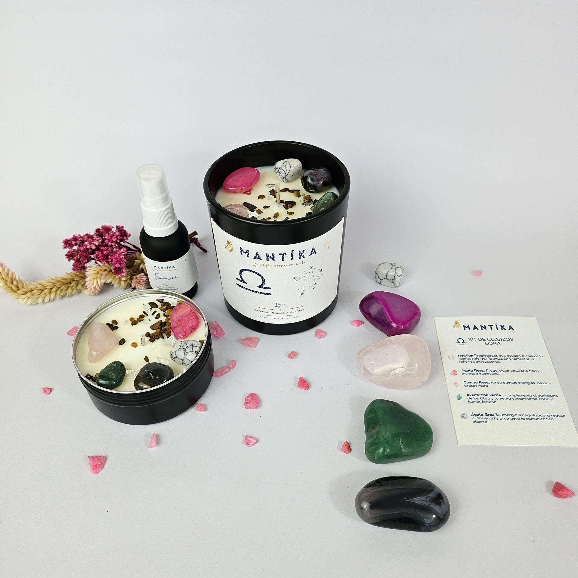 1 Vela artesanal intencionada y aromática de 150 ml, incluye cuarzos ad hoc para el signo.