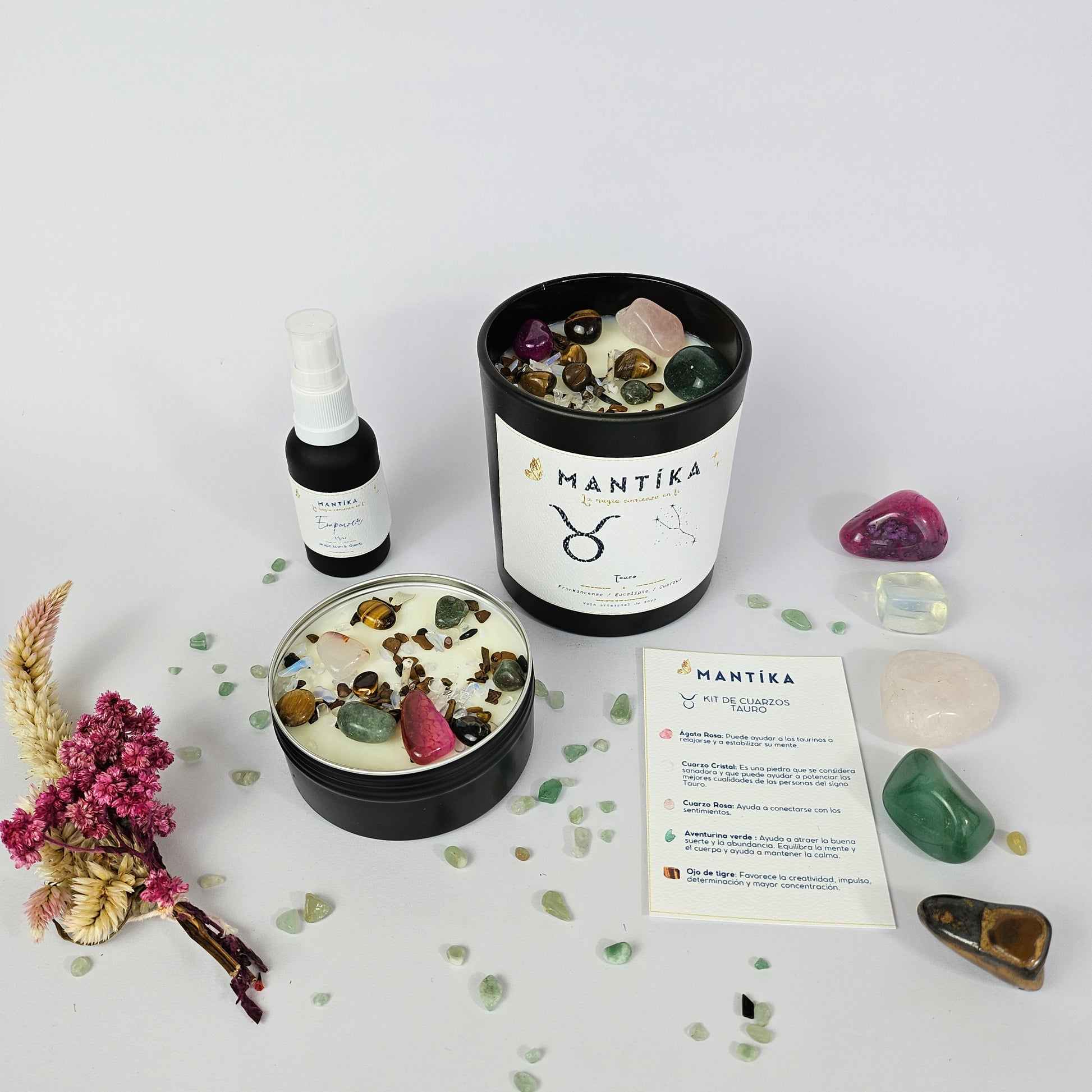 1 Vela artesanal intencionada y aromática de 150 ml, incluye cuarzos ad hoc para el signo.
